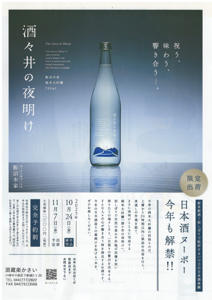 2025.09.29 入荷情報 【2025 甲子 酒々井の夜明け】ご予約フォーム 日本酒ヌーボー『甲子 酒々井の夜明け』ご予約承り中です!本年の発売日は11月7日(金)となります。 https://docs.google.com/forms/d/e/1FAIpQLSdclweF2WQYqyKciqvVpRGaULZow4o9NS1mceKjh8cM7WNWFQ/viewform?usp=header PREV all